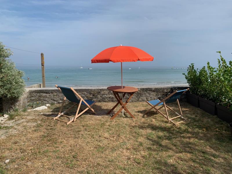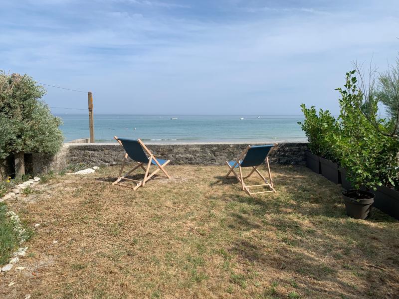 EXCELLENTE SITUATION pour cette maison fonctionnelle, la plage en bas du jardin. Vue mer de la terrasse .