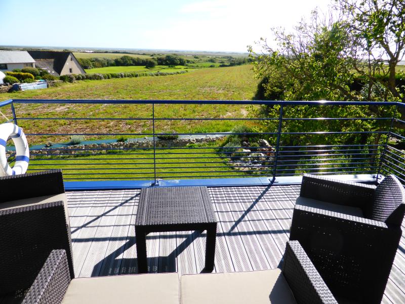 Bonne situation pour cette maison fonctionnelle et lumineuse. Jolie vue sur mer et sur la Baie d'Audierne au loin . Environnement reposant.