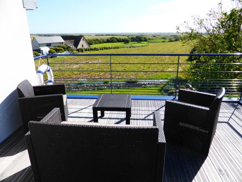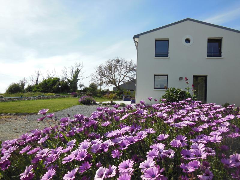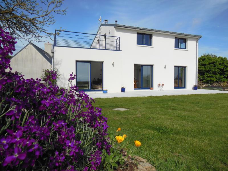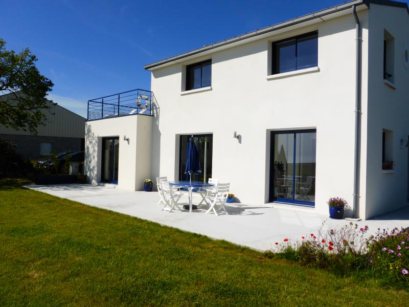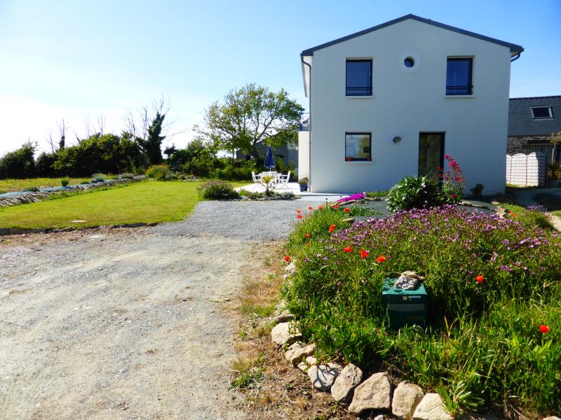 Agréable maison de vacances sur jardin non clos, face à la Baie d'Audierne, dans un quartier tranquille de Tréguennec, à 650m de la belle plage de Kermabec. Exposition Sud. Stationnement du véhicule dans le jardin.