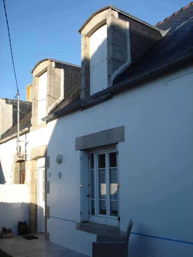 Charmante maison de pêcheur rénovée, mitoyenne, située face au bras de mer du port entre Le Guilvinec et Lechiagat. Petit jardin non clos face à ce bras de mer, cour fermée côté Sud