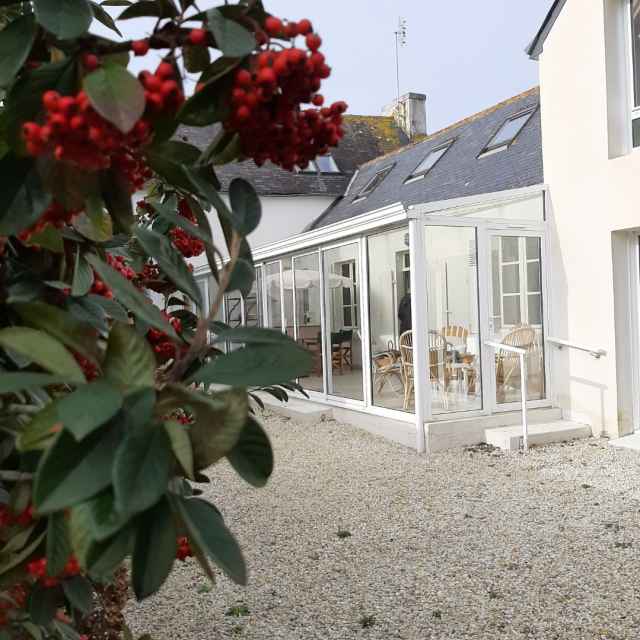 Plage des Sables Blancs à 200m, port à 400m. Stationnement sur rue ou dans la cour d'entrée.