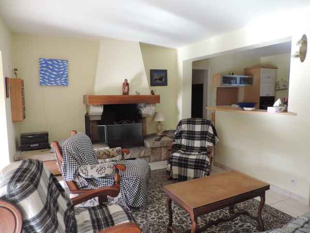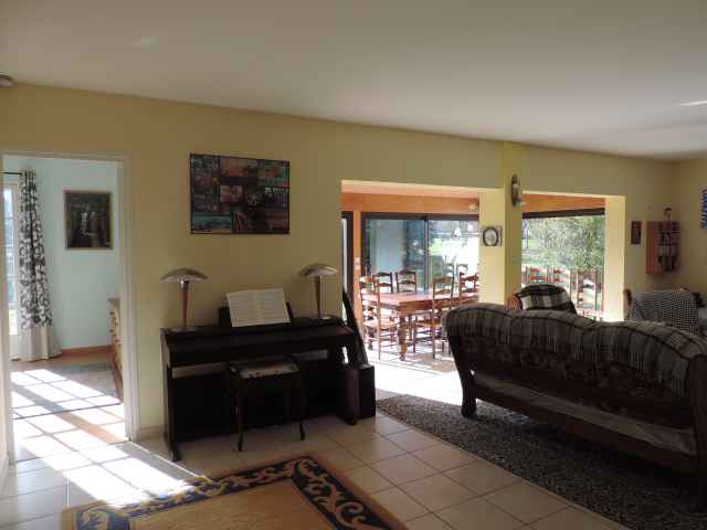 – Grand salon avec cheminée (50m2), ouvrant sur la véranda (16m2): partie repas