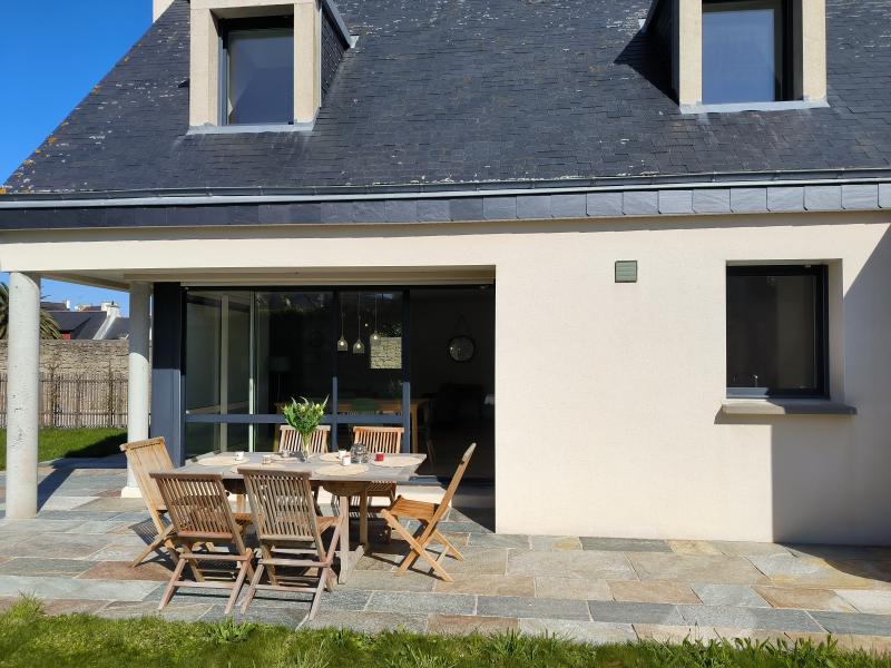 Neue Villa auf einem teilweise eingezäunten 500 m?2 Garten im Herzen von Lesconil, in ruhiger Lage, nur wenige Schritte vom schönen Strand der Sables Blancs und dem Hafen entfernt. Südausrichtung. Parkmöglichkeiten für 2 Autos am Eingang des Grundstücks.