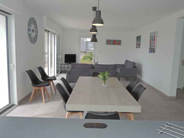 Völlig renovierte neo-bretonische Villa, auf einem Garten von 980 m?2, gelegen im Poulguen in Penmarc'h, in einer ruhigen Umgebung nur wenige Schritte vom Strand entfernt. Südausrichtung. Strand von Ster nur 400 m entfernt. Hervorragende, gepflegte und komfortable Unterkunft, neue Ausstattung. Neue und qualitativ hochwertige Bettwäsche (Bettwäsche Valentin, hergestellt in Quimper). Schöne Meerblick vom Wohnzimmer und den drei Schlafzimmern im Obergeschoss. Wohnfläche: 140 m?2