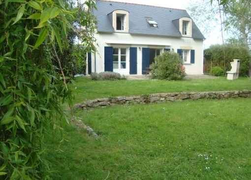 Grande villa néo-Bretonne sur jardin de 1500m2 clos, à 600m de la jolie petite plage de Kerfriant à Loctudy. Exposition Sud. Environnement calme. Surface habitable: 150 m2.
